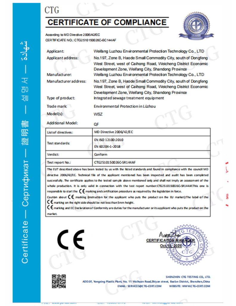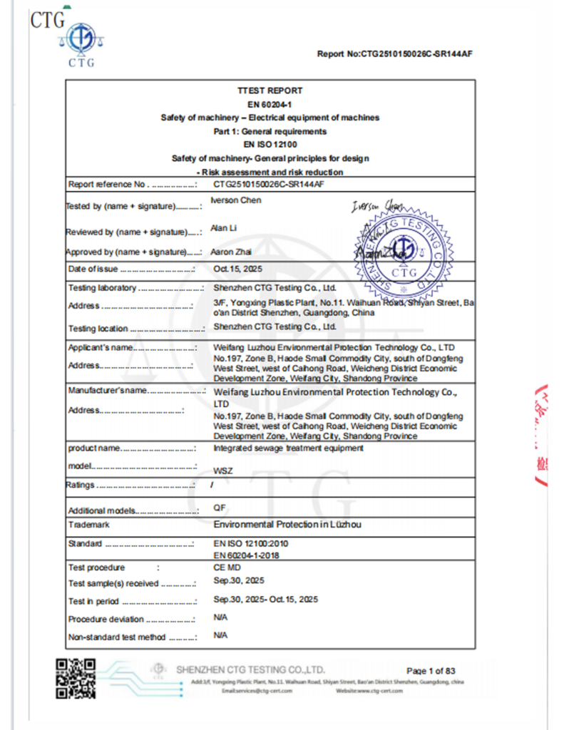 “The sewage treatment equipment provided by Luzhou Environmental Protection Technology operates stably and meets our discharge requirements. Their technical team responded quickly during installation and commissioning.”